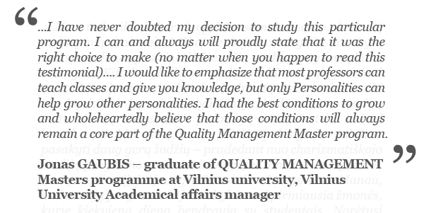 Jonas GAUBIS – graduate of QUALITY MANAGEMENT Masters programme at Vilnius university, Vilnius University Academical affairs manager TESTIMONIAL 2010.12.30